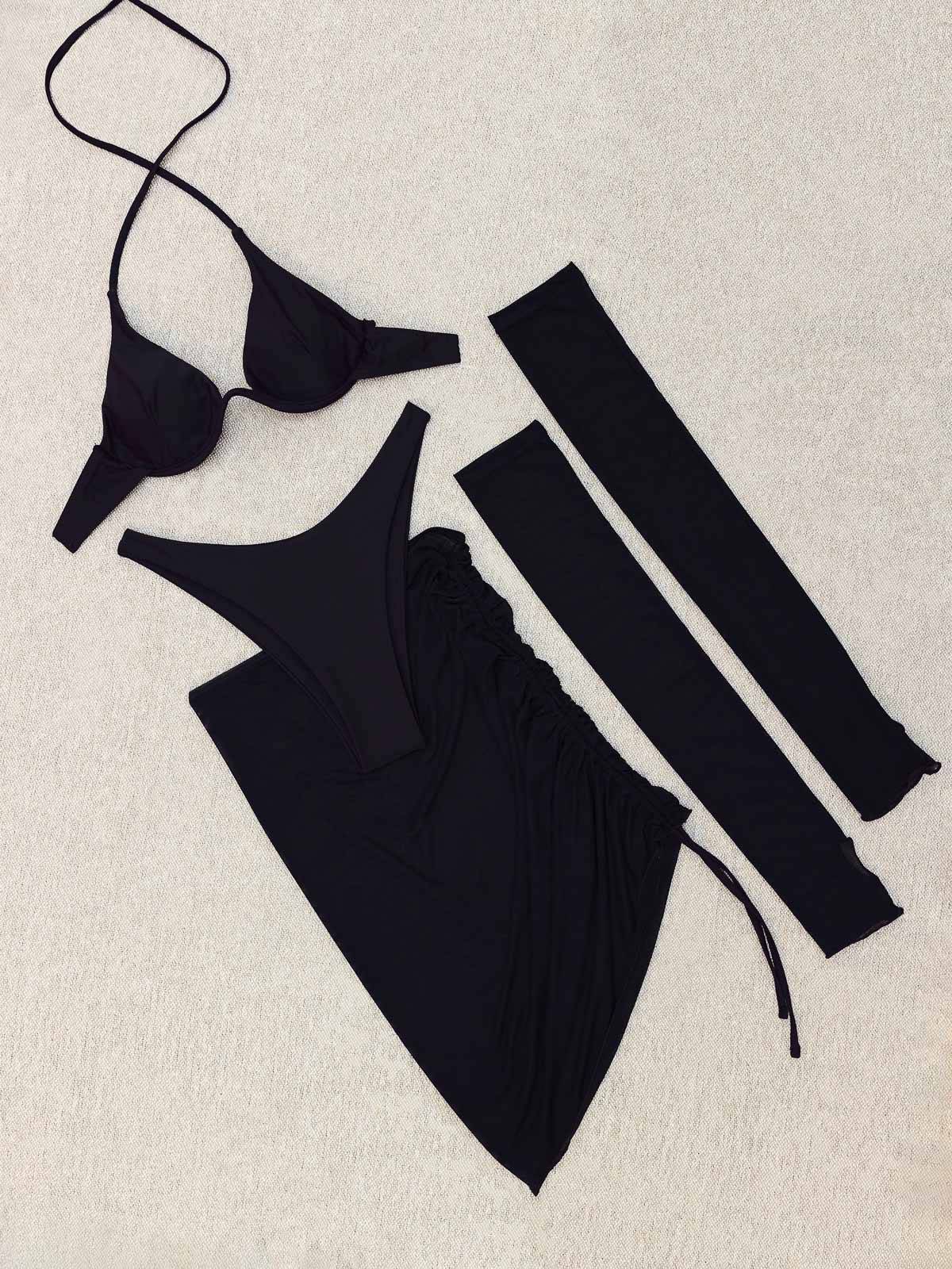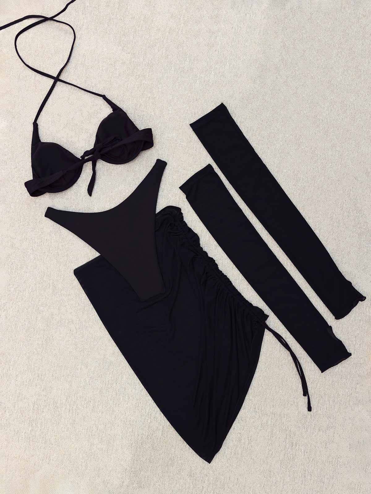- Το σετ αποτελείται από 4 τεμάχια -μαζί- το Top μπικίνι με αγαπημένη τόξο μπανέλα, το ψηλόμεσο Brazil σε V High Rise Γραμμή, το παρεό (Sarong skirt) και τα γάντια – 4 Pieces Set από την νέα αποκλειστική Elegant – Classy συλλογή της LavalMore ®