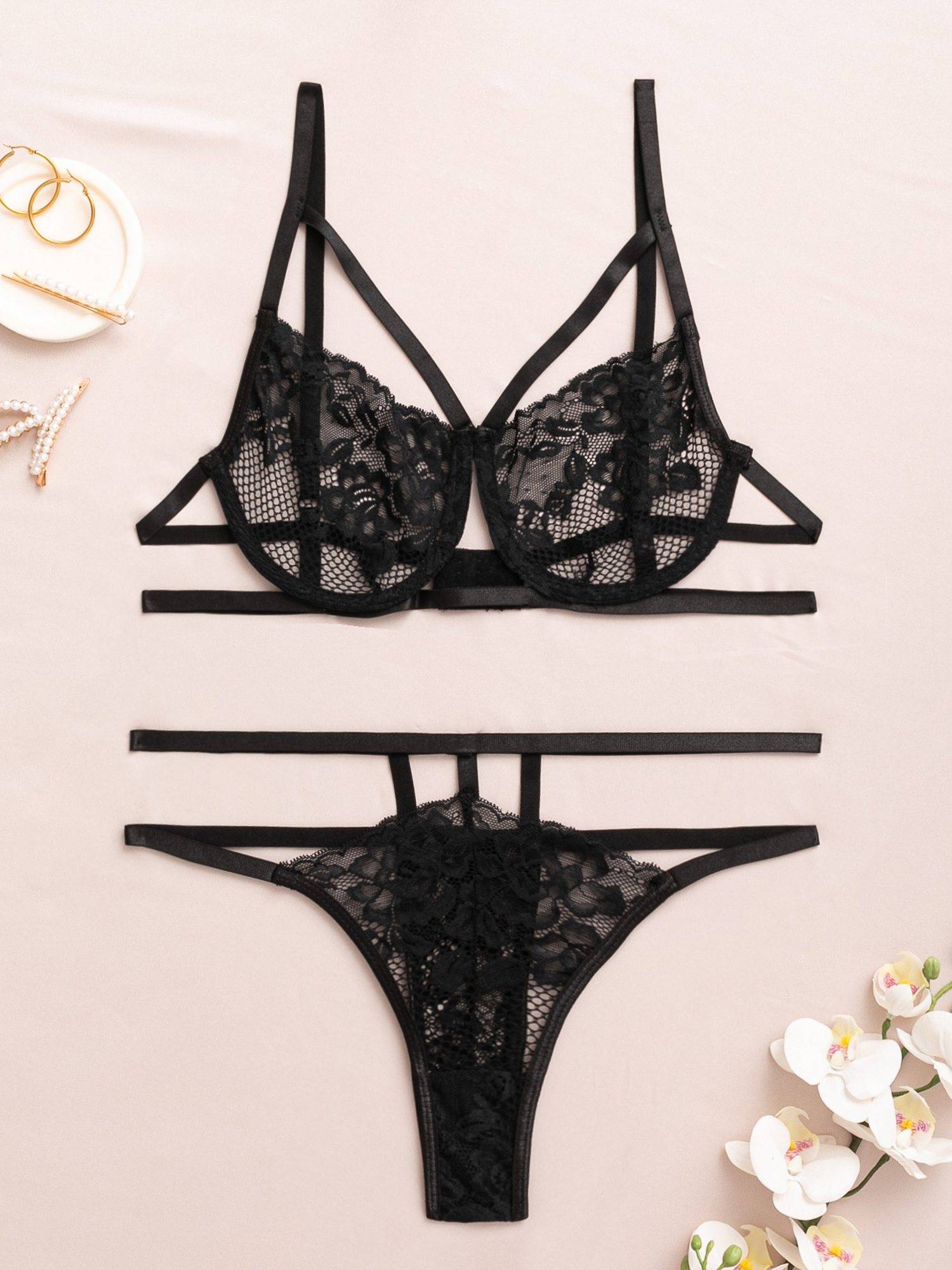 - Υπέροχο σετ εσωρούχων, συνδυασμός ελαστικής δαντέλας και διχτάκι