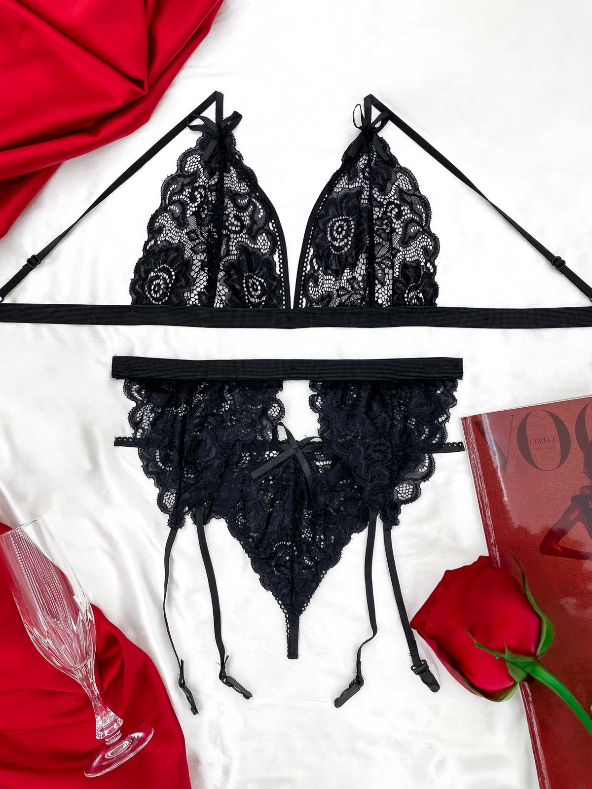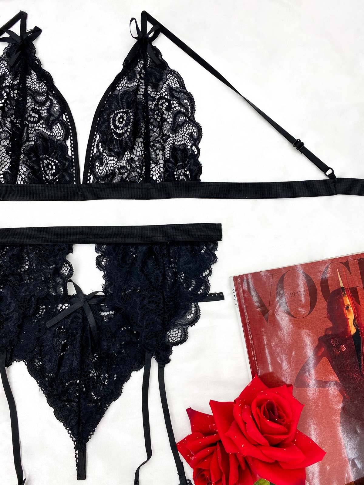 Σετ Bralette Δαντελωτό με String και Ζαρτιέρα