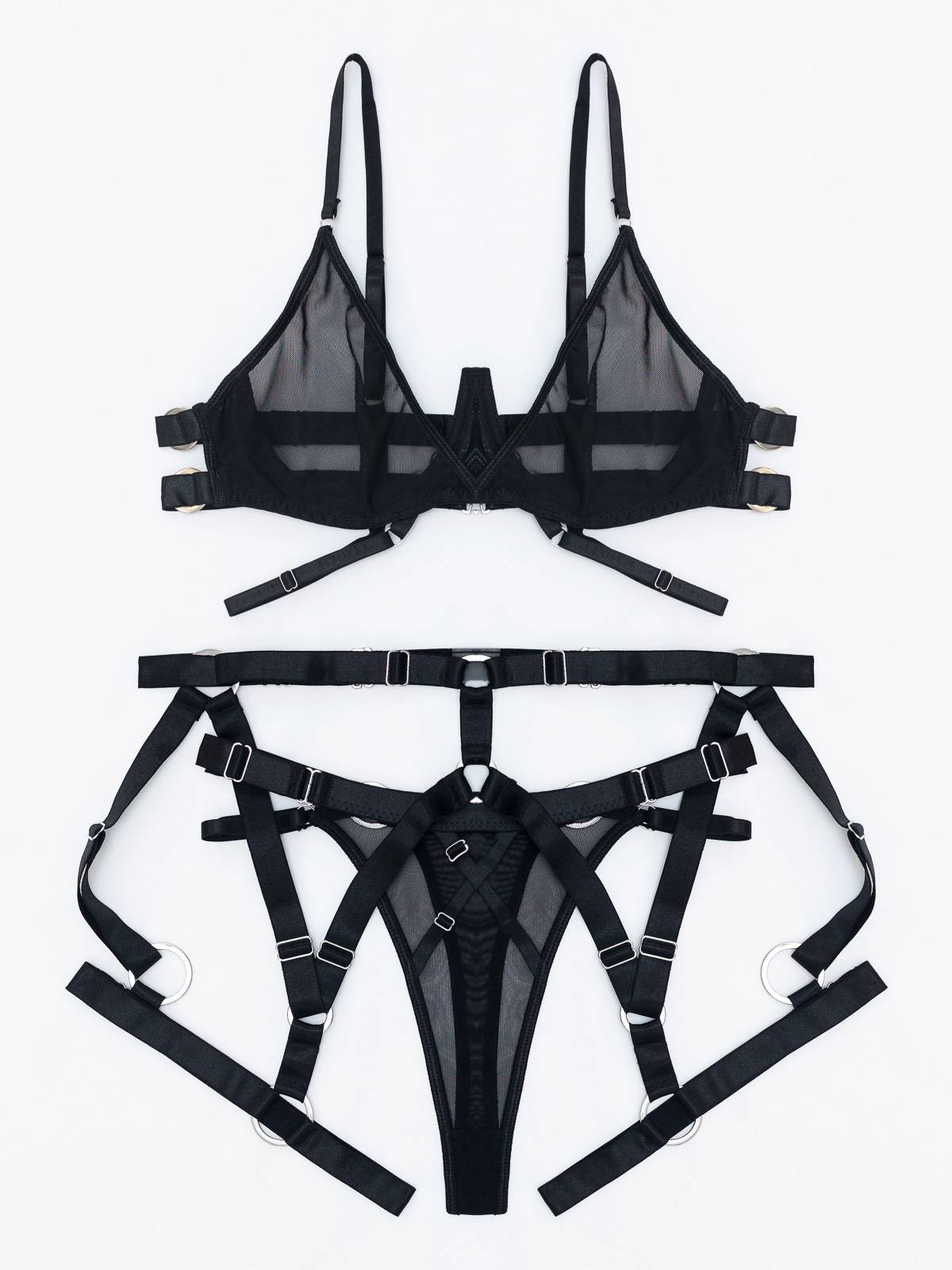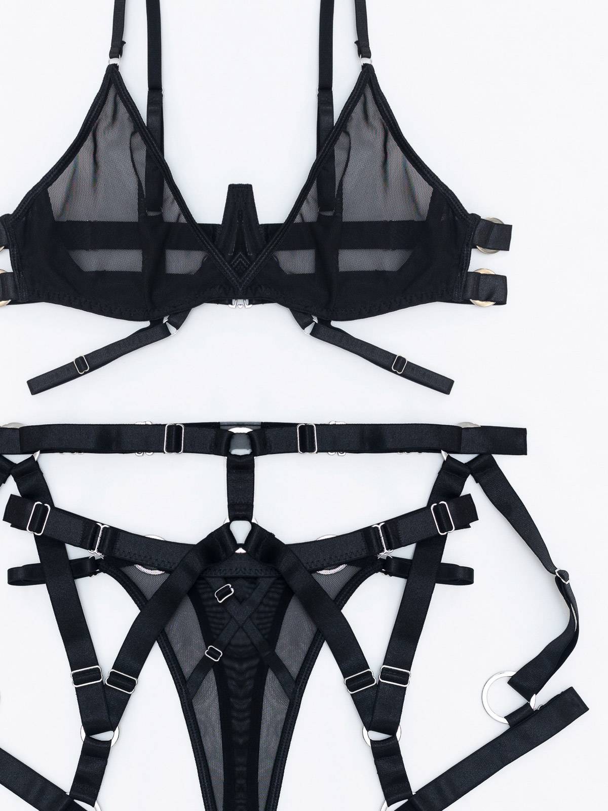 - Το σετ εσωρούχων αποτελείται από -3- τεμάχια μαζί: το Bralette, το ψηλόμεσο String και την ζαρτιέρα με ενσωματωμένες καλτσοδέτες (3 pieces set)