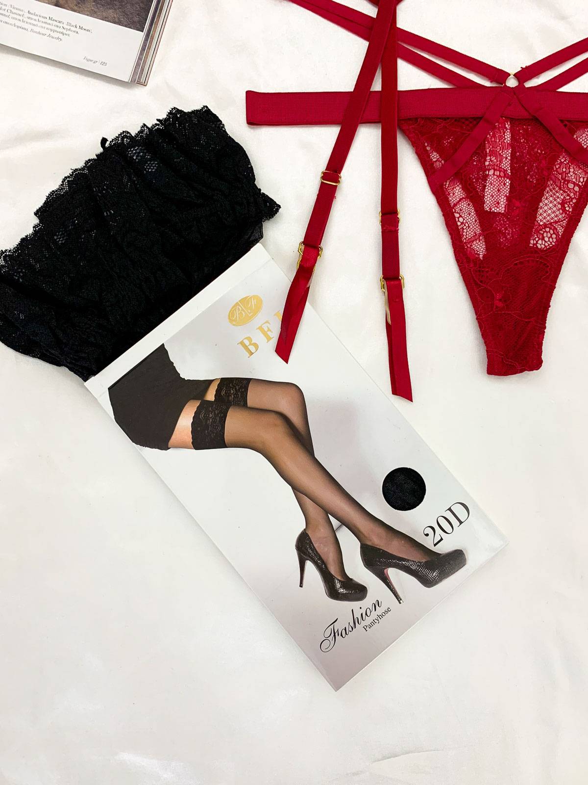 - Ζαρτιέρα δαντελωτή στο ίδιο χρώμα του σετ