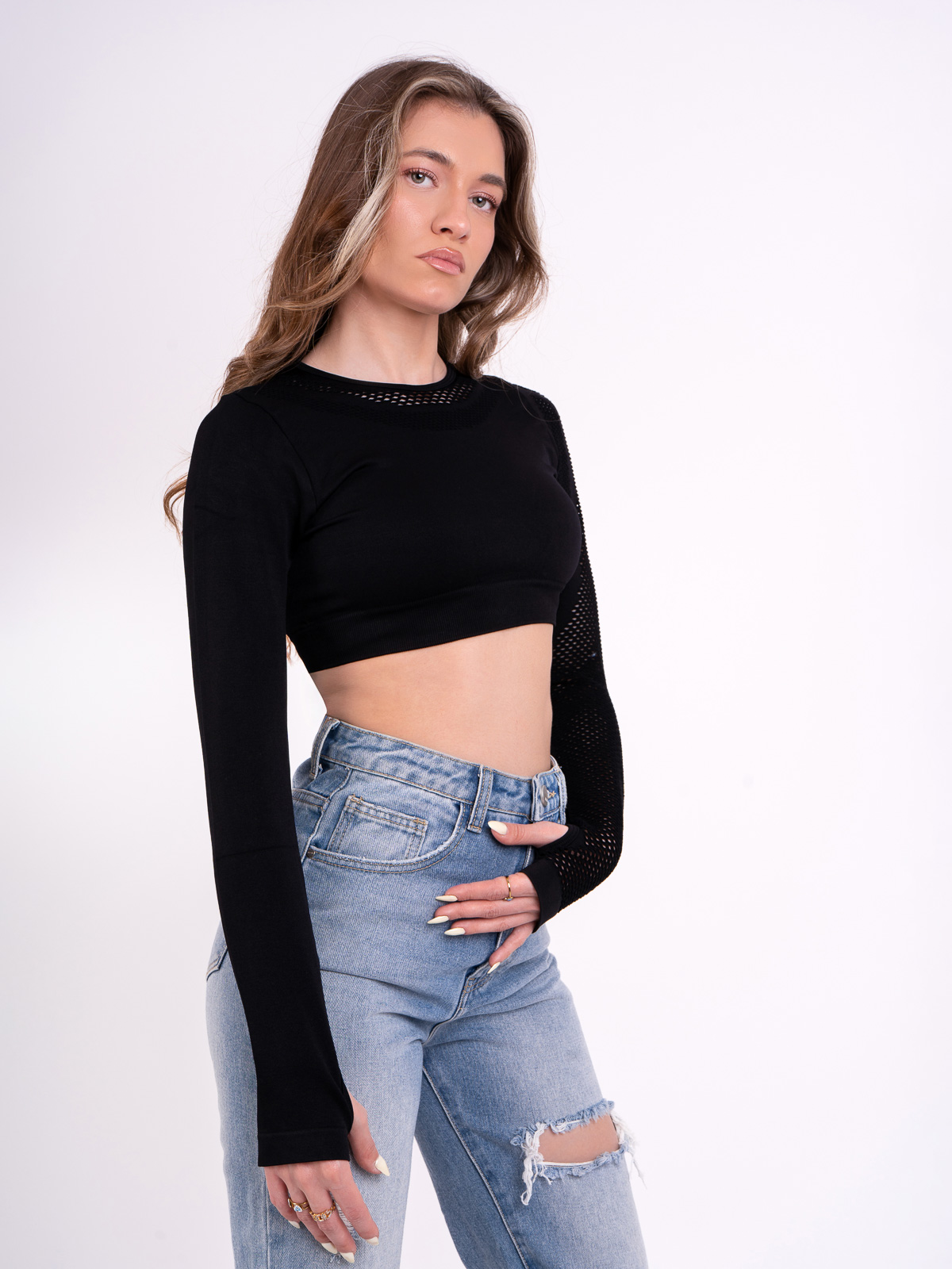- Το Crop Top με μακρύ μανίκι είναι το κομμάτι που συνδυάζει άνεση και στυλ, είτε το φορέσεις με το αγαπημένο σου jean, είτε με ένα κολάν – για πιο athleisure εμφάνιση