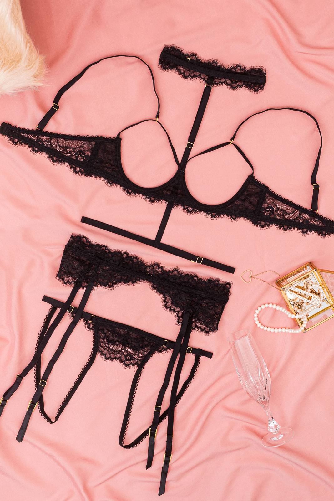 CupLess Bralette Σετ με Ζαρτιερες και Choker στο Λαιμό
