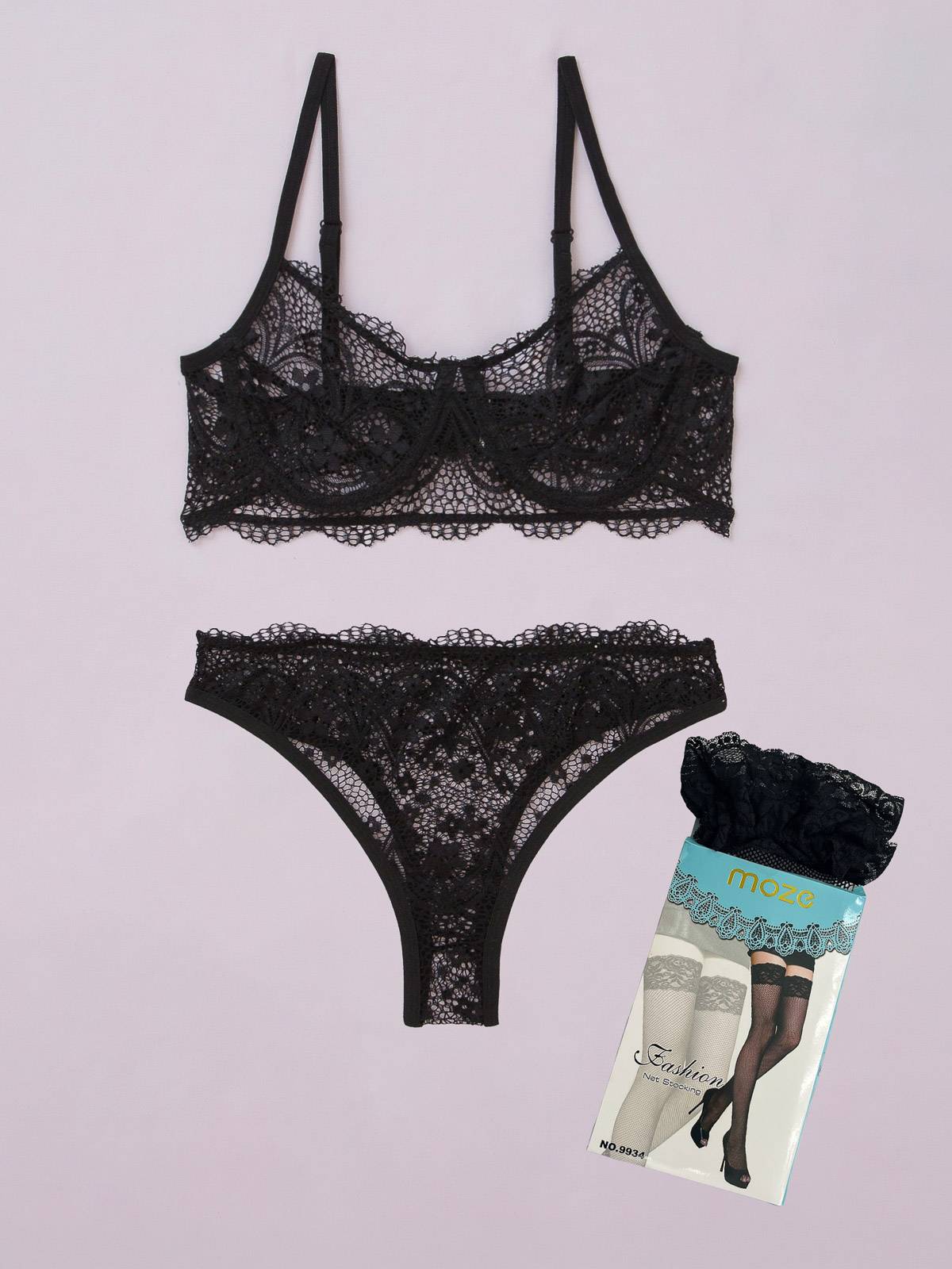 - Το σετ εσωρούχων αποτελείται από -3- τεμάχια: το σουτιέν, το brazil και τις ψηλές διάτρητες κάλτσες -μαζί- (3 pieces set)