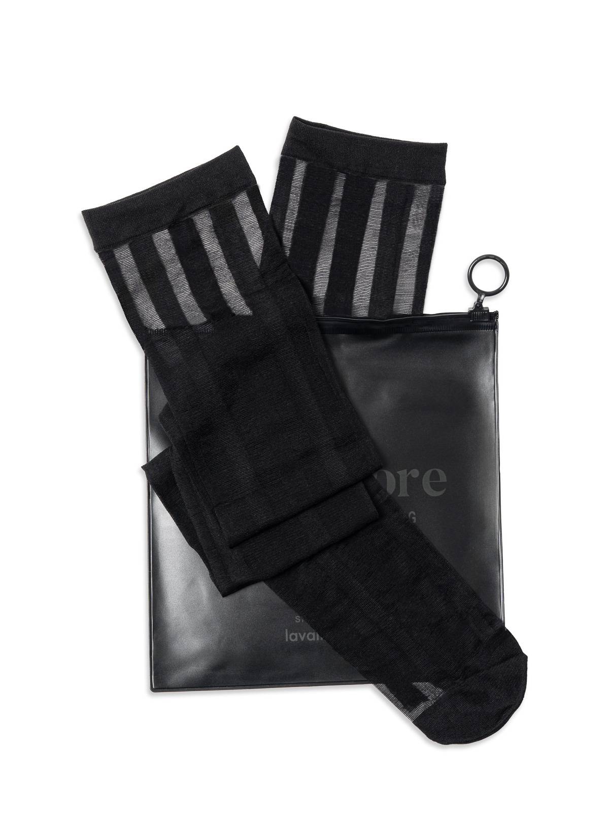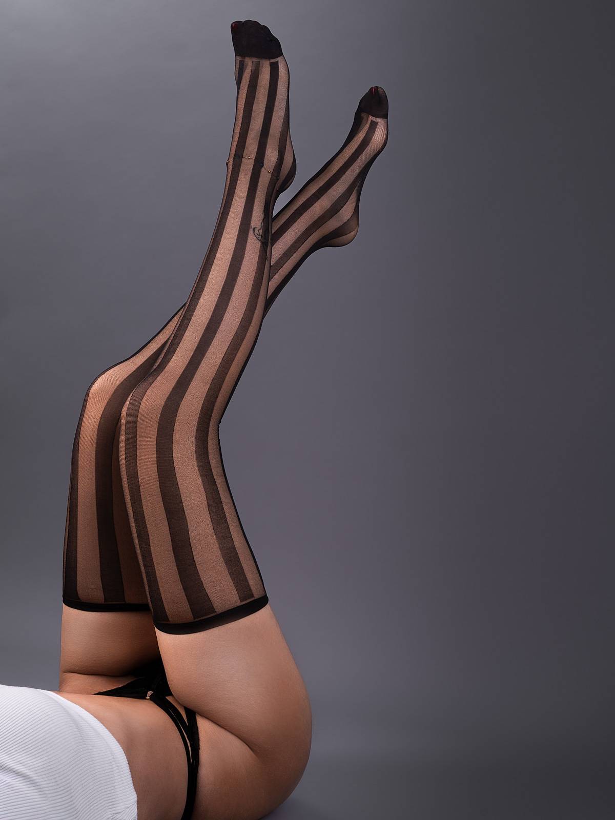 - Διαφανείς ψηλές κάλτσες λύκρα, πάνω από το γόνατο με μακριές ρίγες