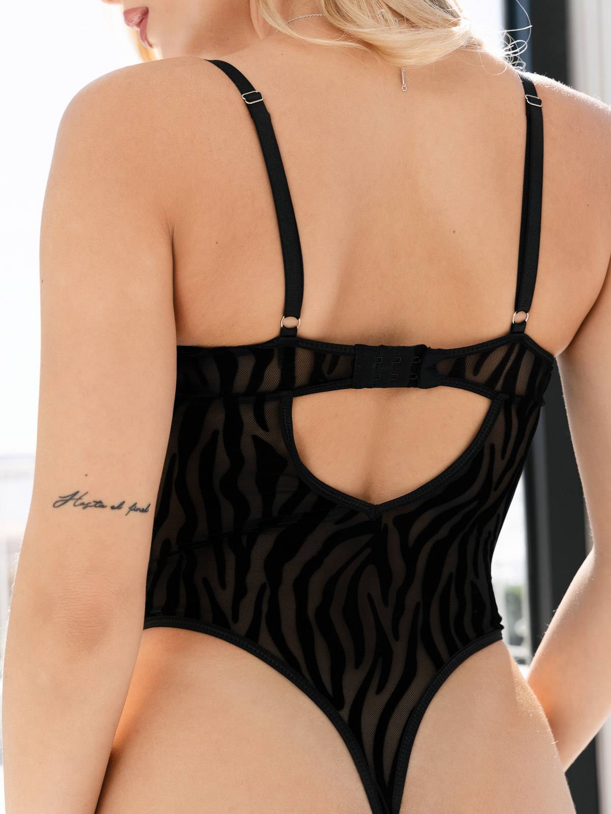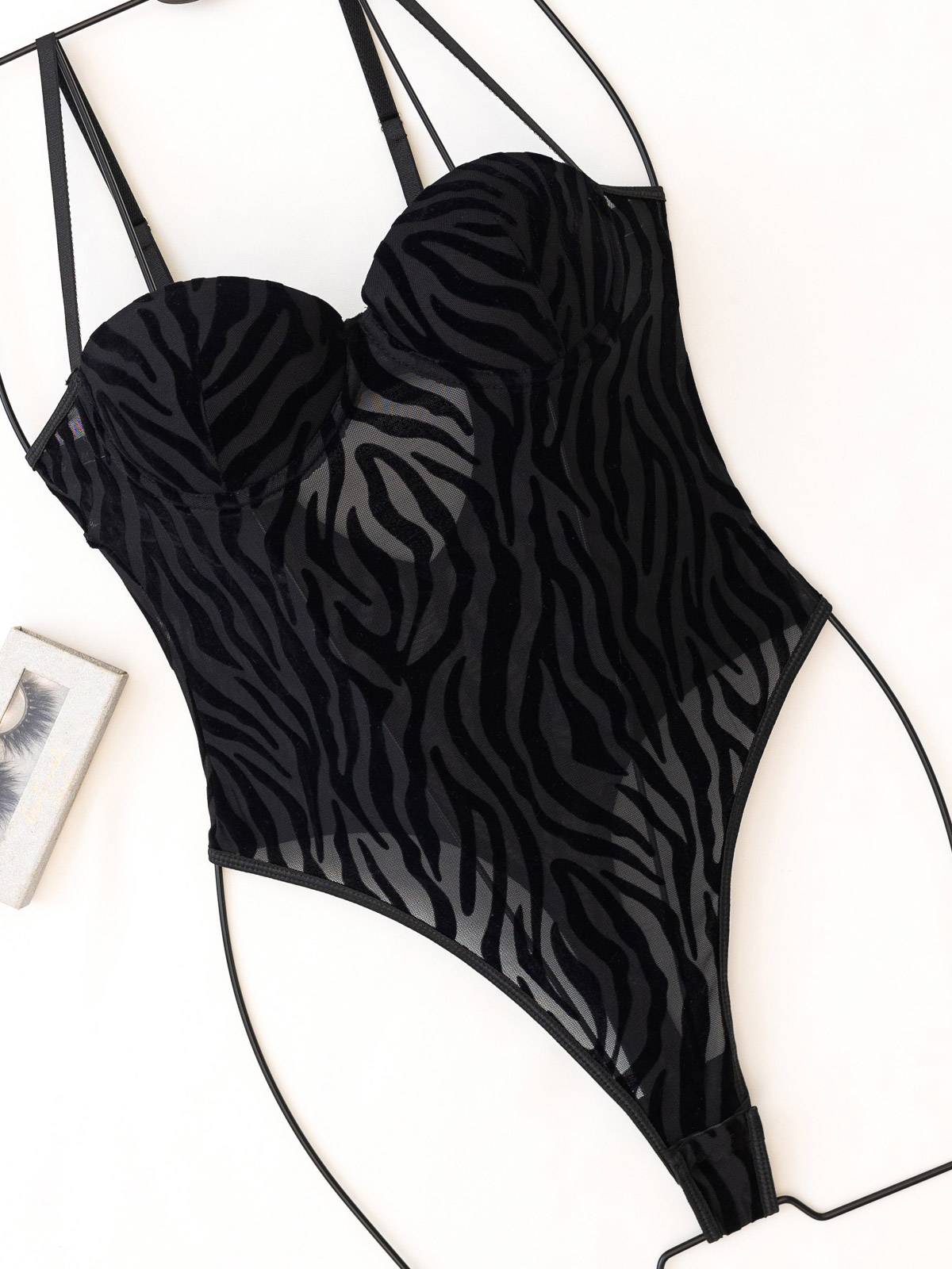 - Κορμάκι (Body) String See Through με βελούδινες τιγρέ λεπτομέρειες
