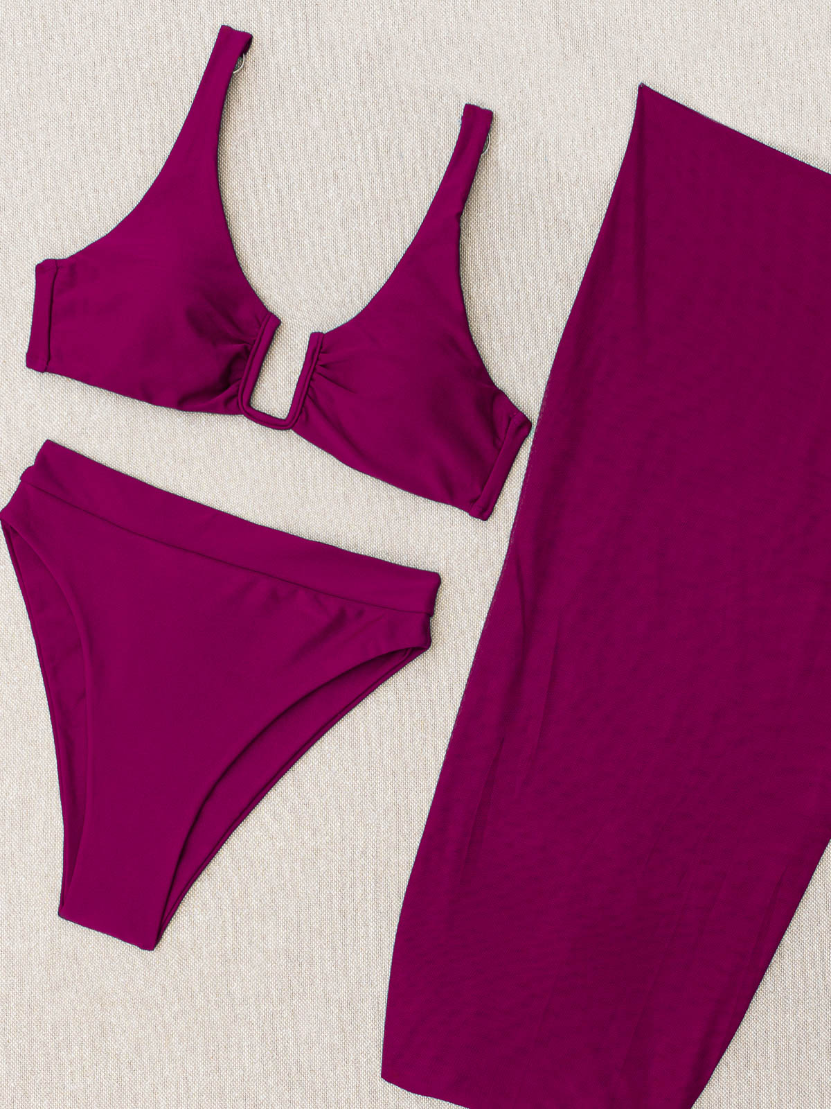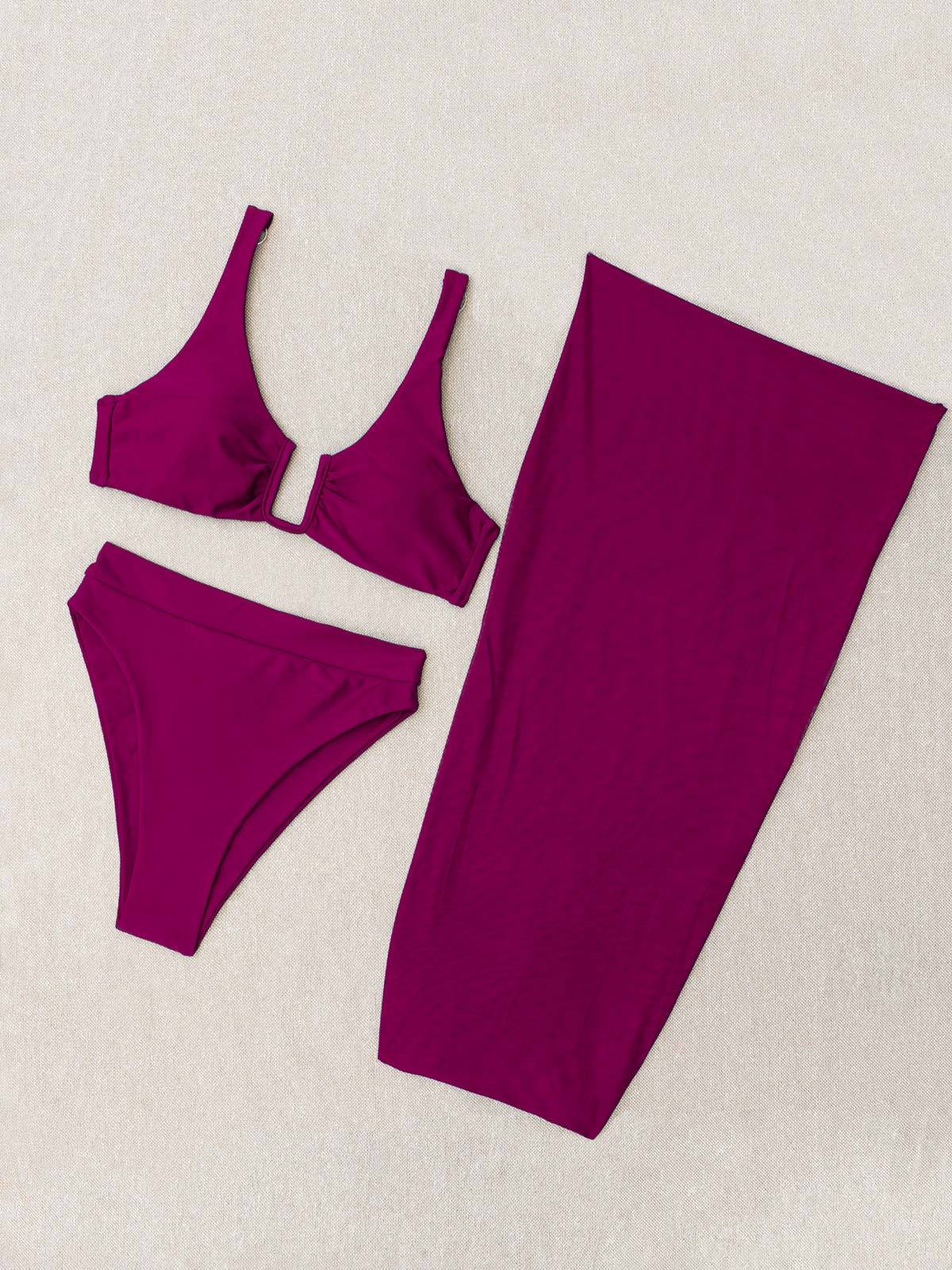 - Το σετ αποτελείται από 3 τεμάχια μαζί – το μαγιό μπικίνι με το μπουστάκι, το ψηλόμεσο Brazil και το παρεό (3 pieces set)