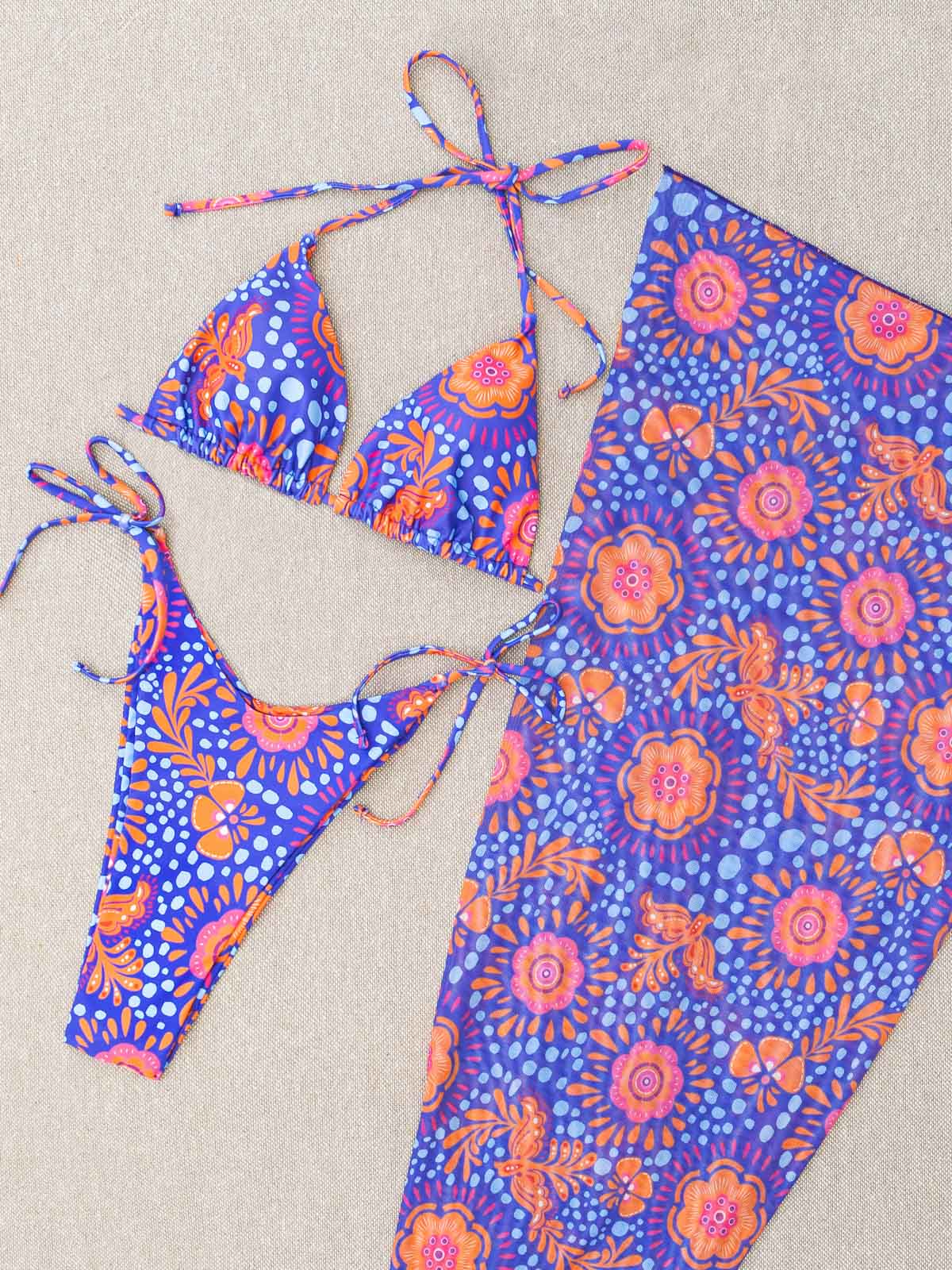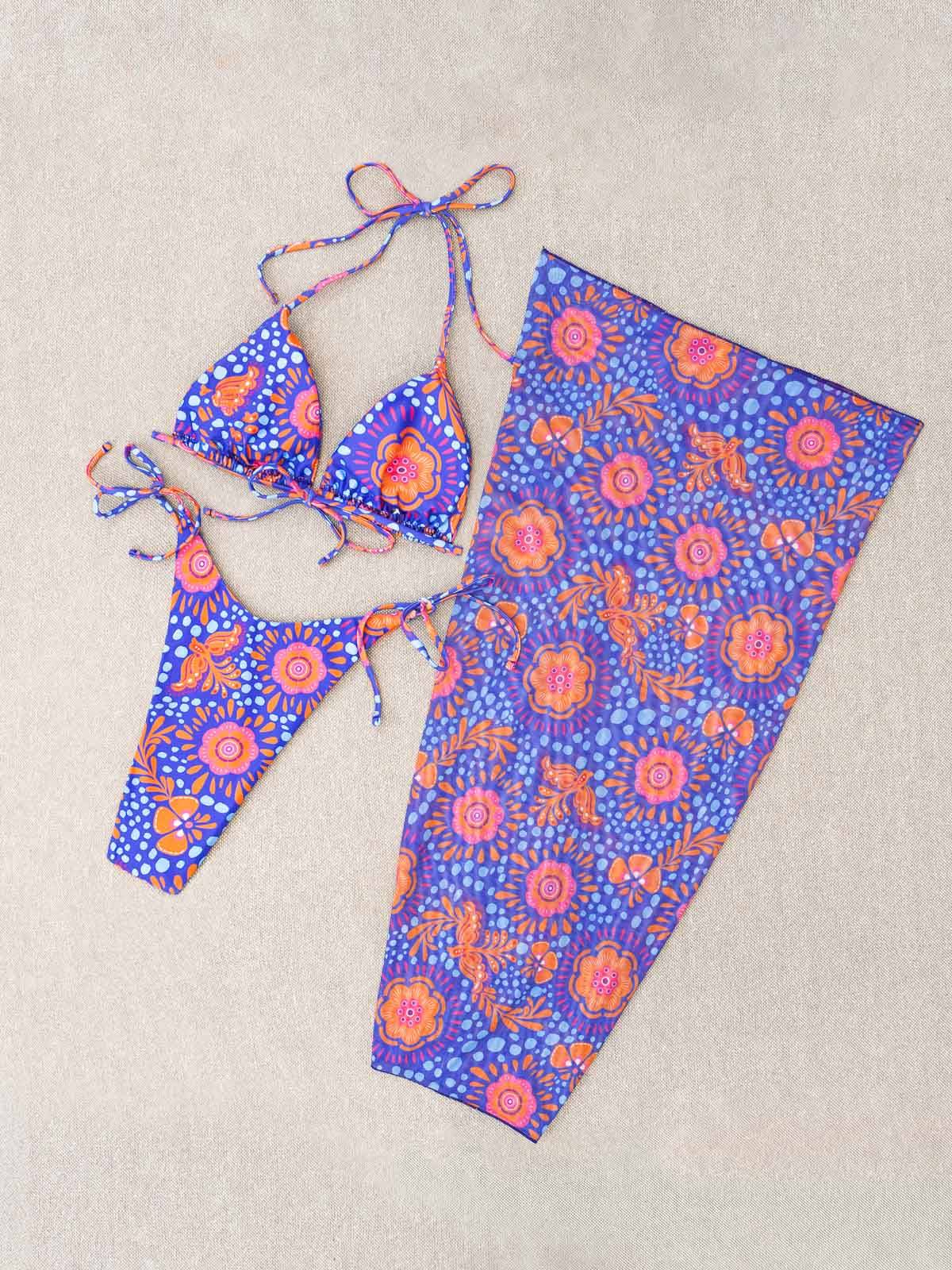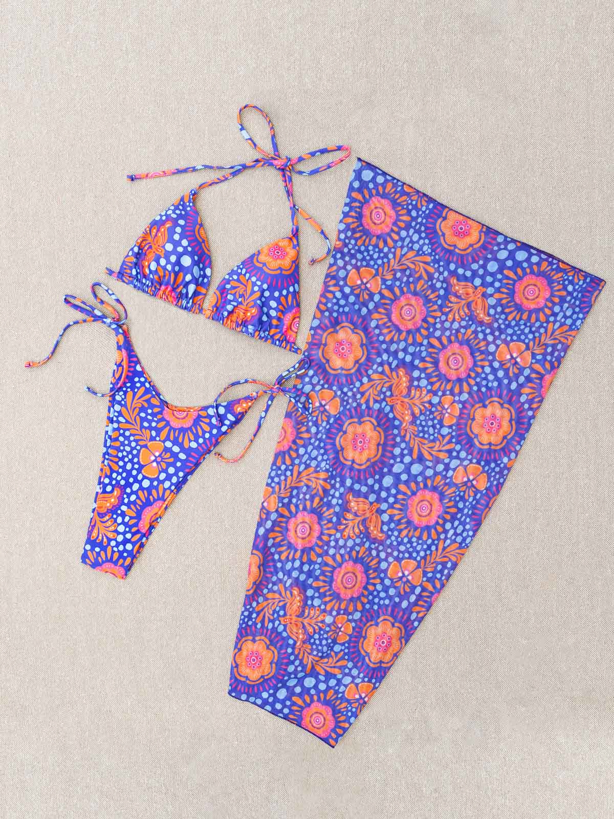 - Το σετ αποτελείται από 3 τεμάχια μαζί – το σετ μπικίνι, με ενισχυμένο τρίγωνο και extra ψηλόμεσο Brazil και το μακρύ παρεό (3 pieces set)