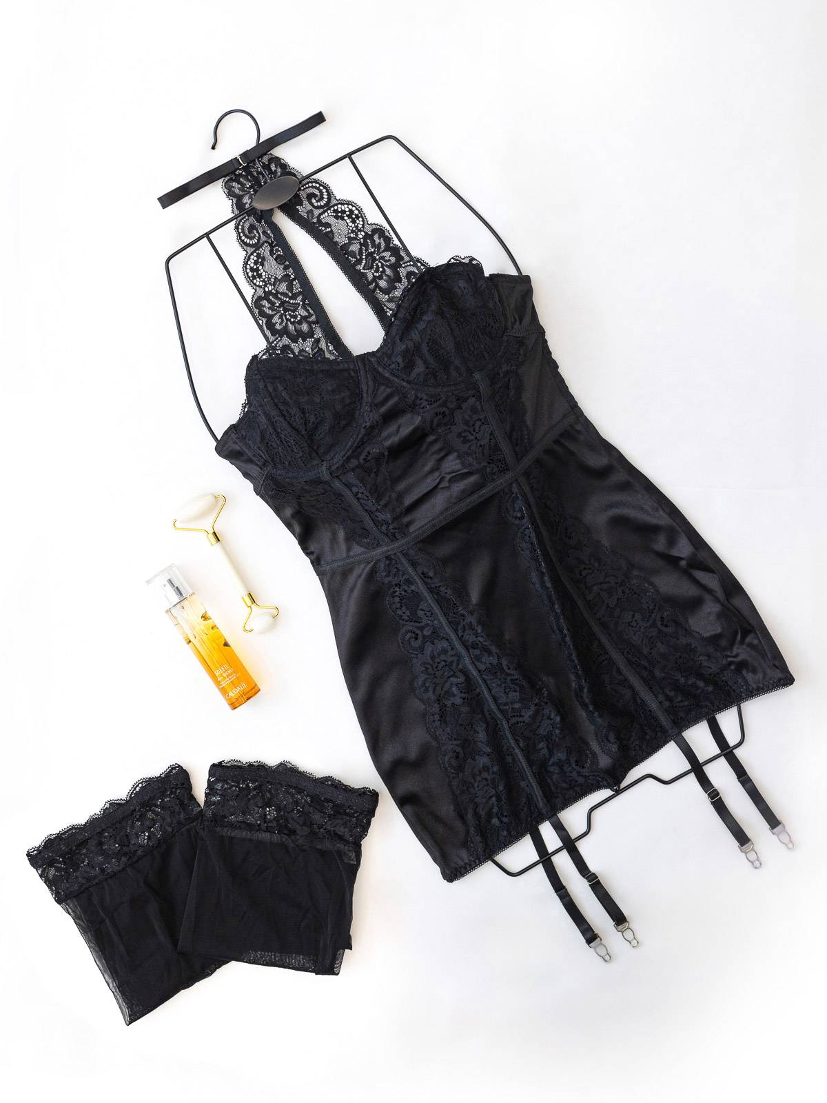 - Σετ εσώρουχα που αποτελείται από 2 τεμάχια μαζί: το νυχτικό (εσώρουχο) με ζαρτιέρες και τις κάλτσες (2 pieces set)