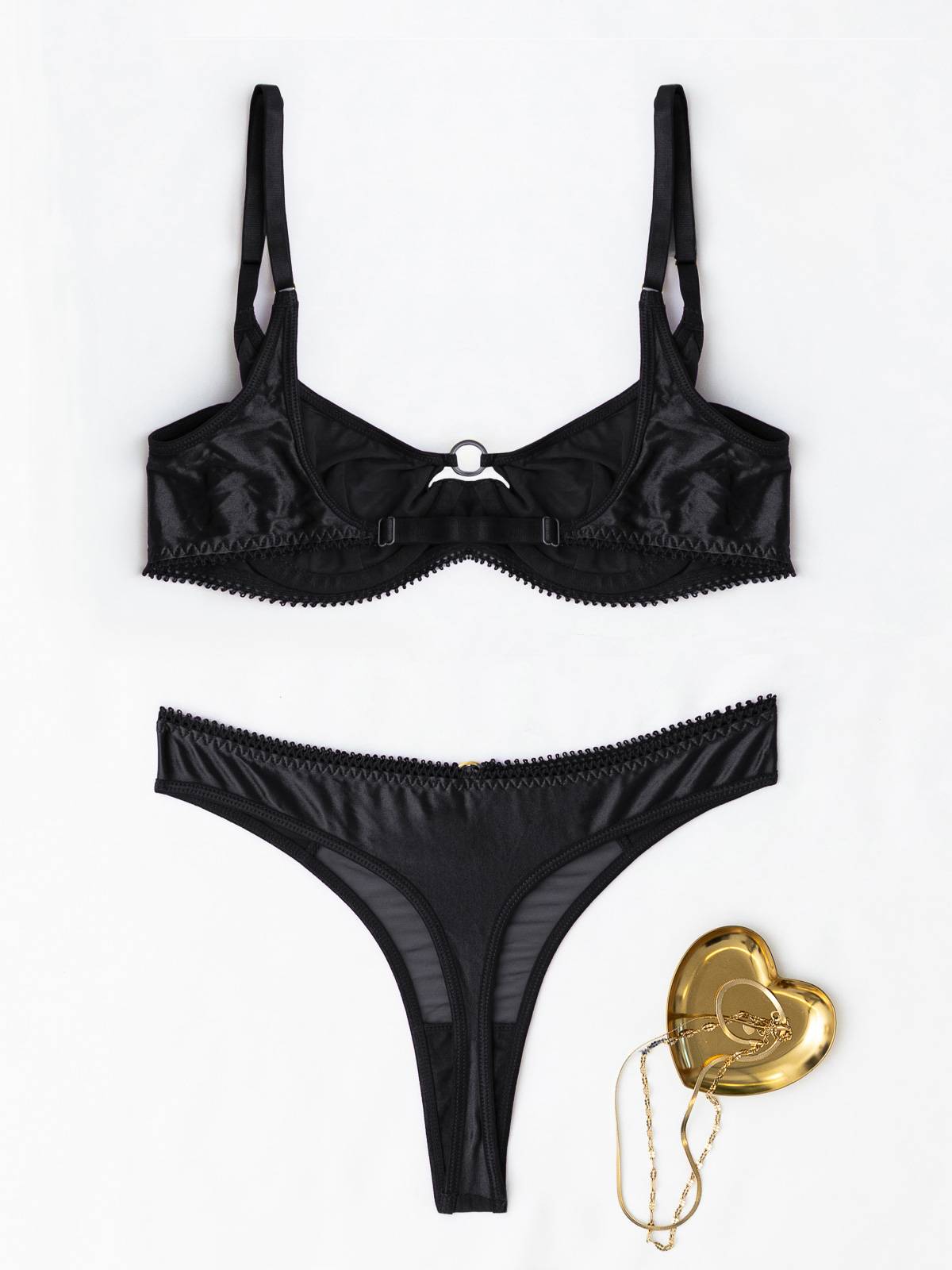 Σατέν Σετ Εσωρούχων με Μπανέλα και String