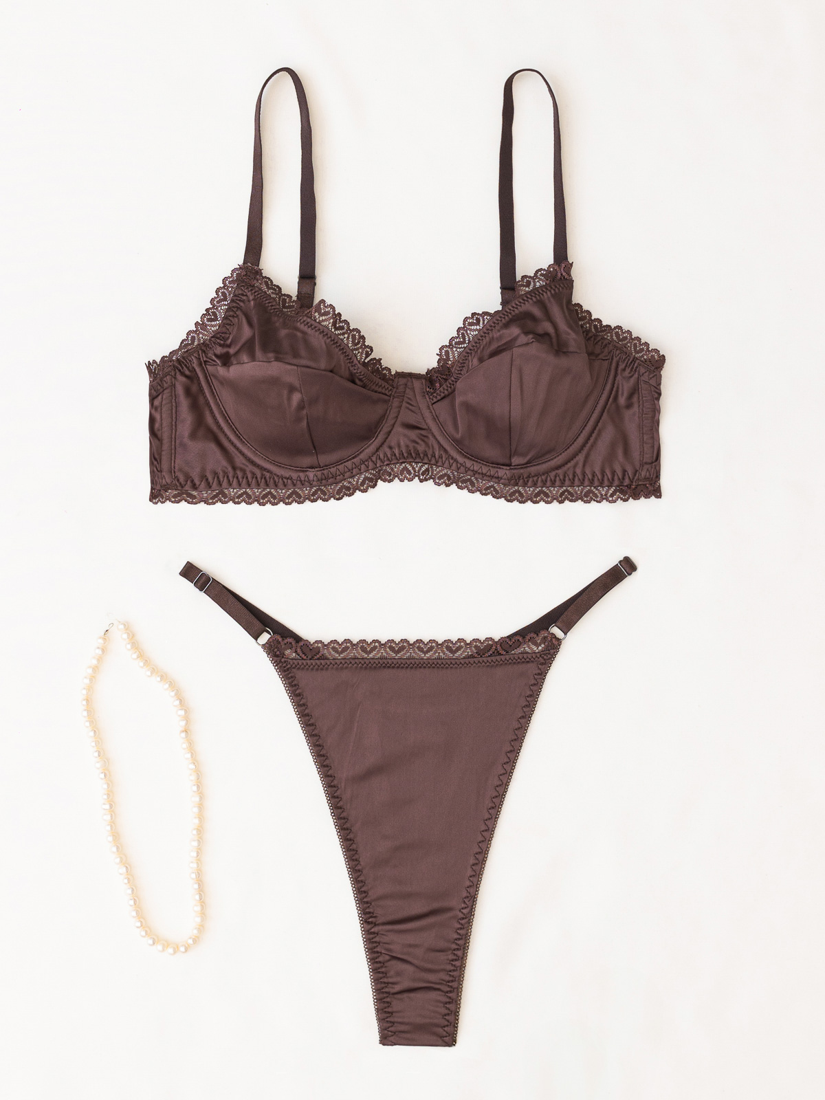 Σατέν Σετ Εσωρούχων με Ψηλόμεσο String