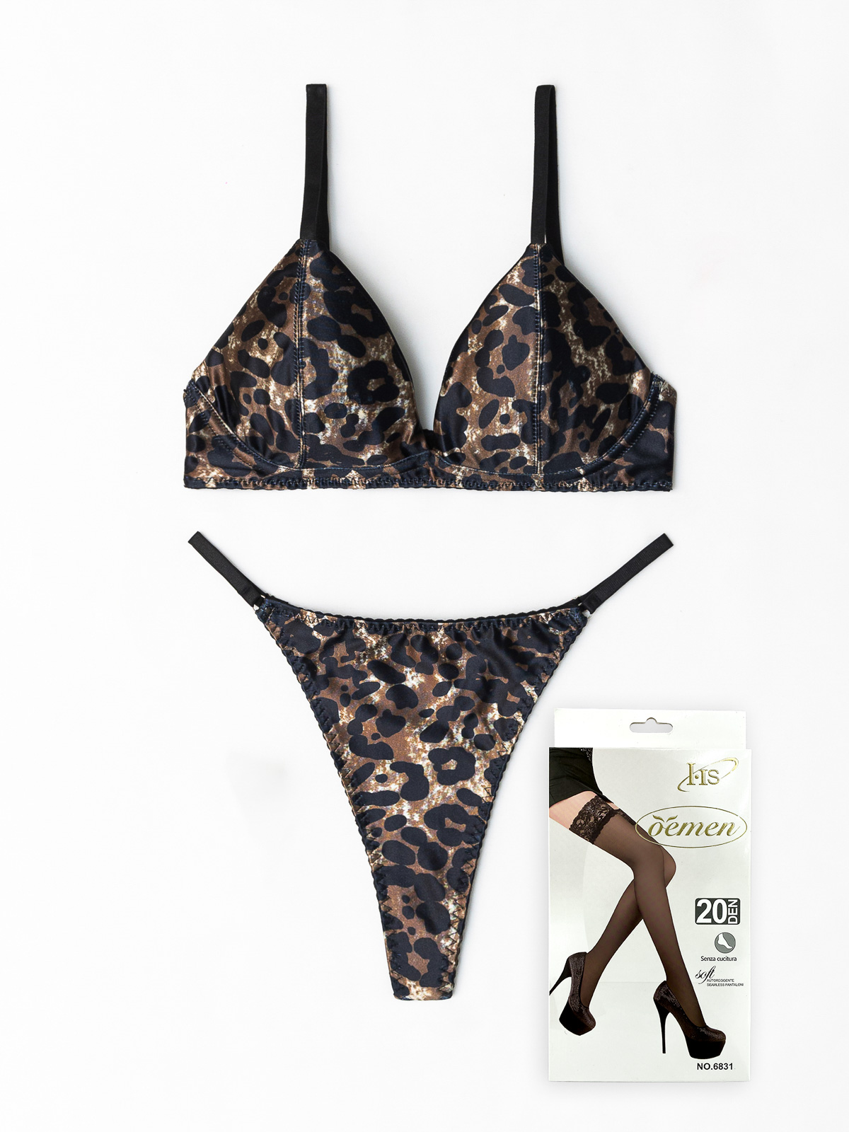 - Σατέν σετ εσωρούχων Brallete με πολυαγαπημένο Print Leopar