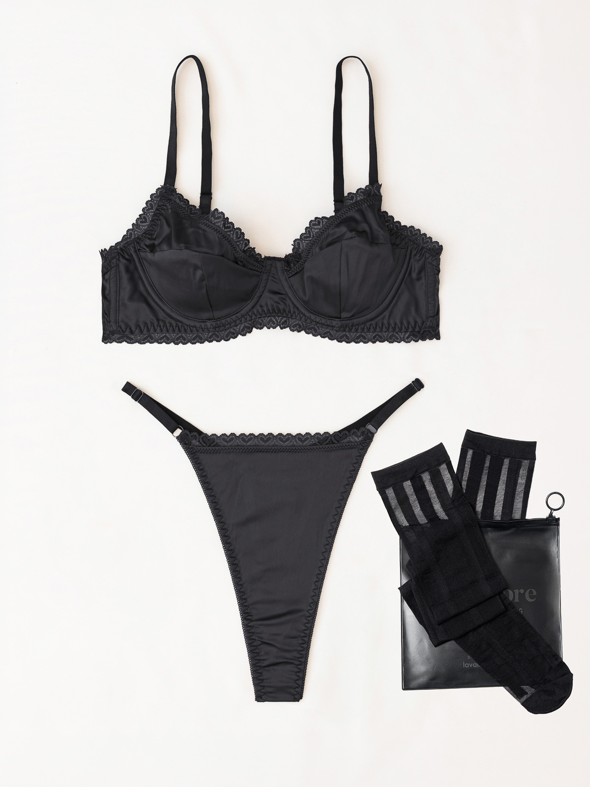 Σατέν Σετ Εσωρούχων με String και Κάλτσες