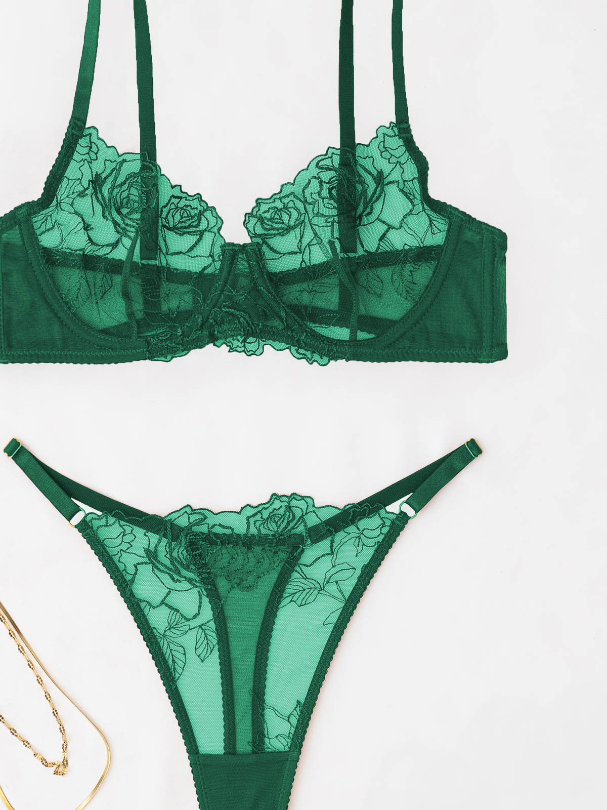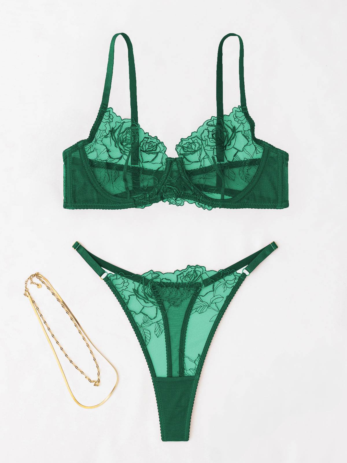 - Σετ εσώρουχα See Through με κεντημένες λεπτομέρειες σε σχεδιασμό λουλουδιών