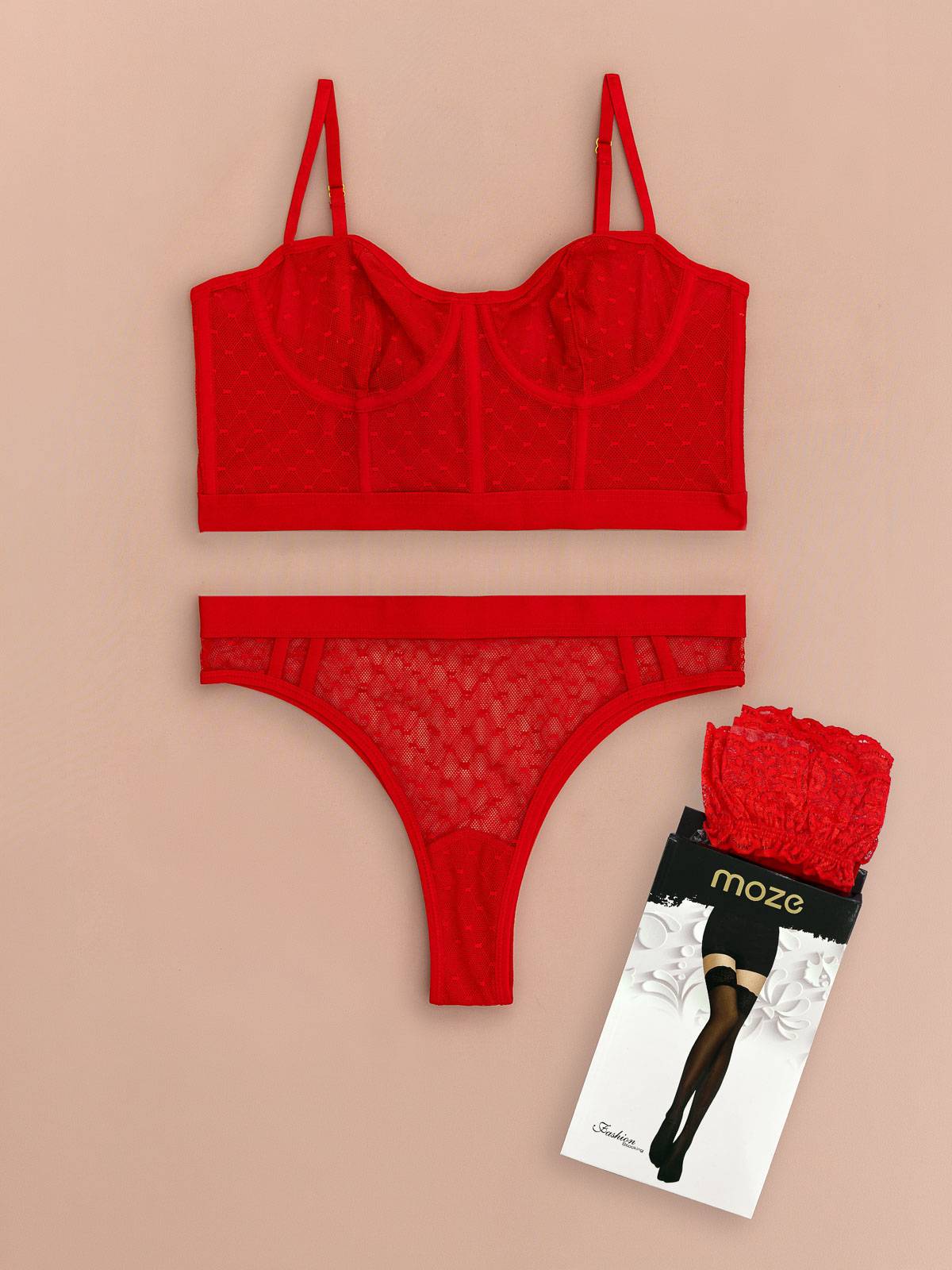 Σετ Εσώρουχα με Μπουστάκι, Ψηλόμεσο String και Κάλτσες