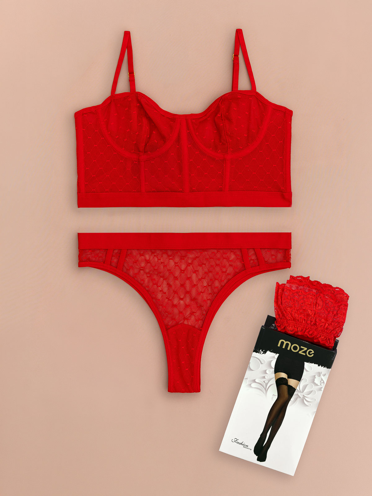 - Το σετ εσωρούχων αποτελείται από -3- τεμάχια: το σουτιέν, το string και τις ψηλές κάλτσες -μαζί- (3 pieces set)