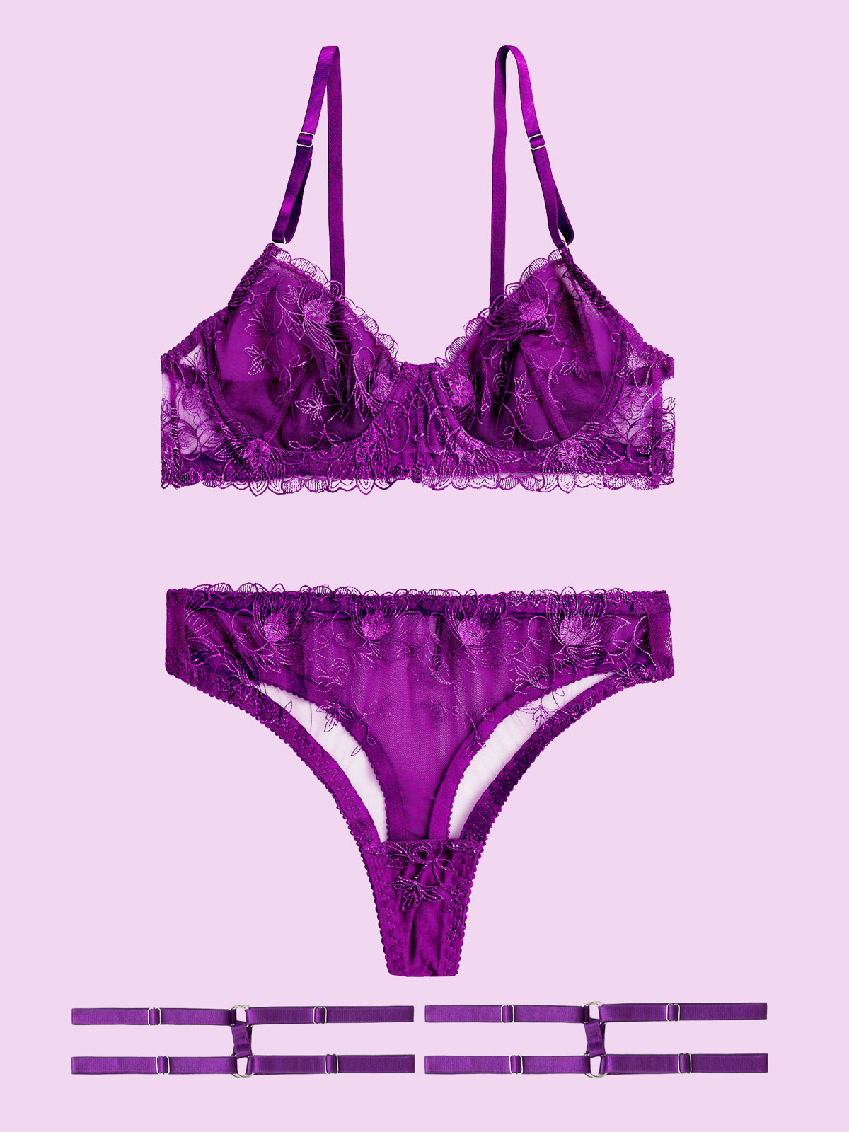 - Σετ εσωρούχων από εντυπωσιακή κεντημένη διαφάνεια με διακριτική λάμψη