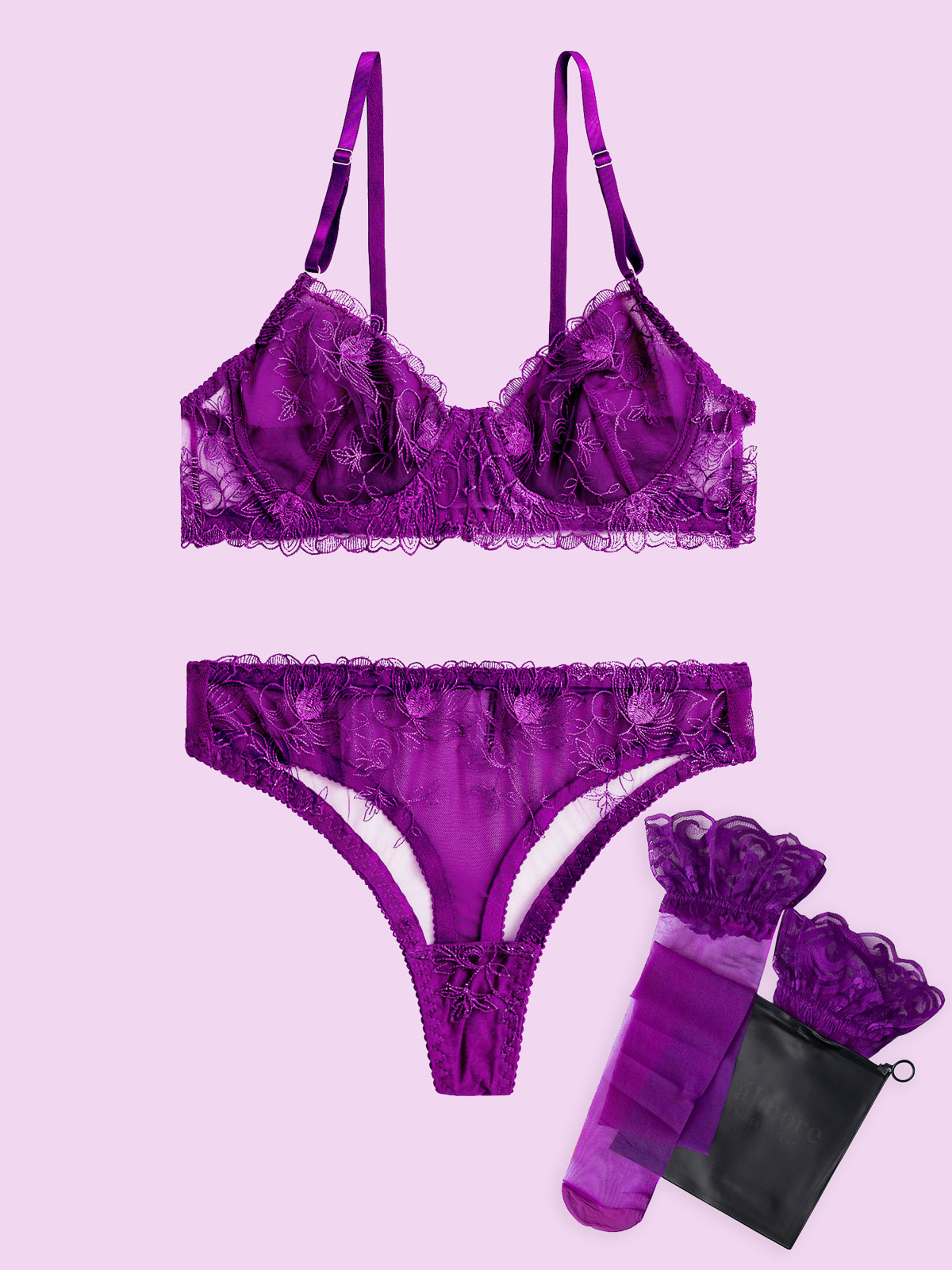 - Εντυπωσιακό σετ εσωρούχων από κεντημένη διαφάνεια με διακριτική λάμψη