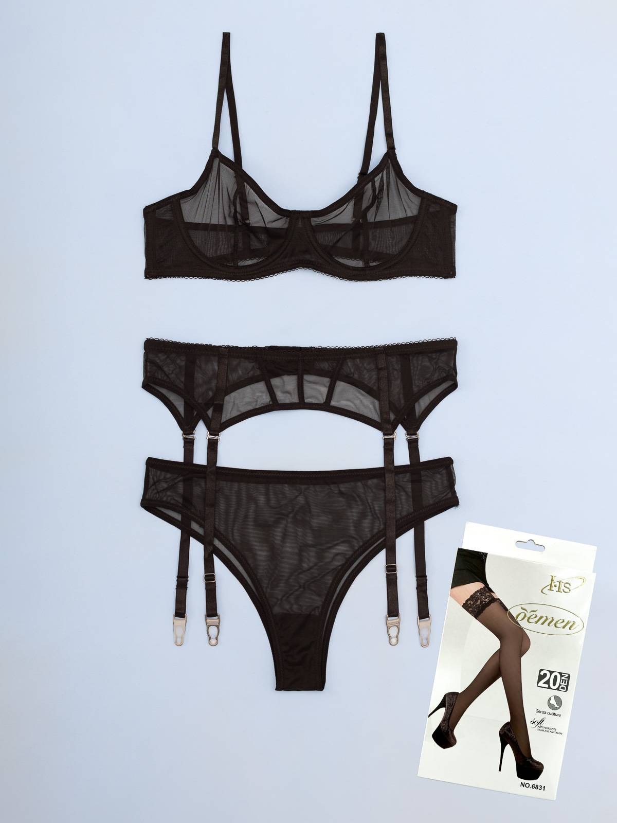 Σετ Εσωρούχων See Through με Brazil, Ζαρτιέρα και Κάλτσες