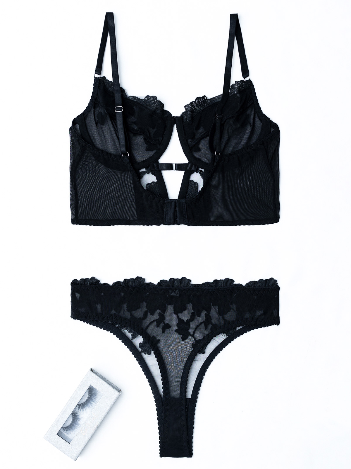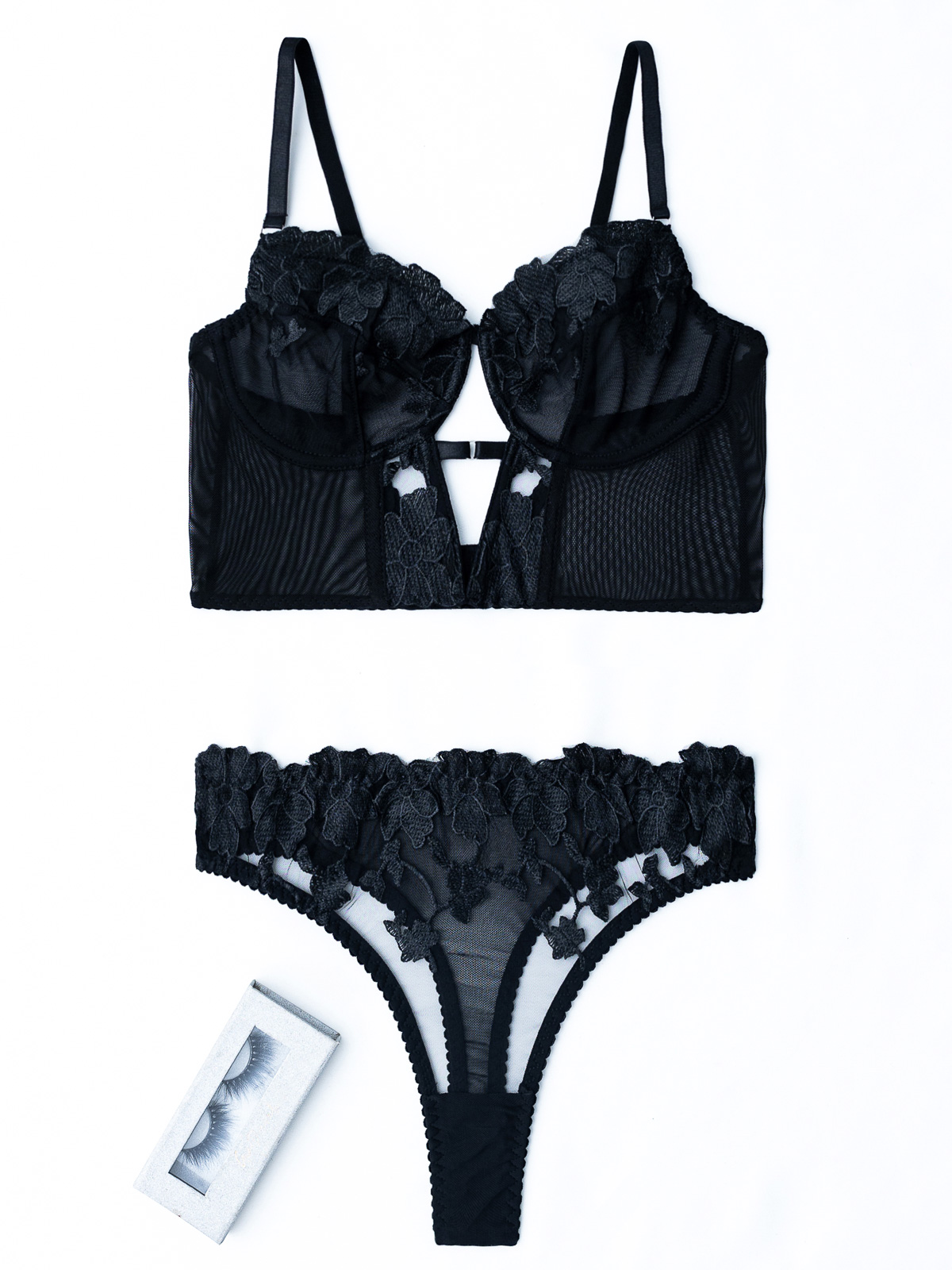 - Σετ εσωρούχων μπουστάκι διαφάνεια με κεντημένες συνθέσεις λουλουδιών