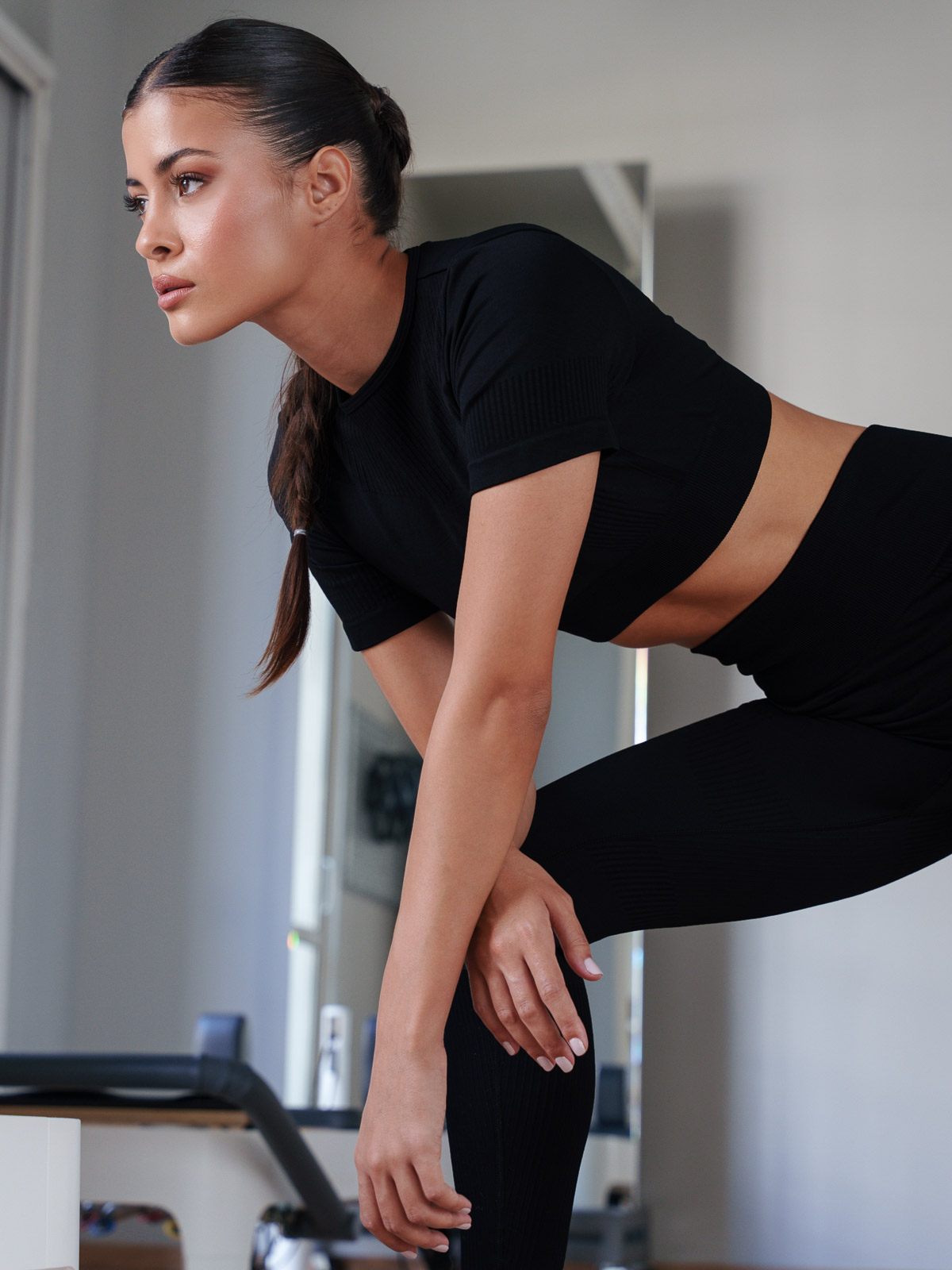 Το Transform Power Seamless αθλητικό σετ γυμναστικής περιλαμβάνει το κοντομάνικο αθλητικό crop top και το αθλητικό ψηλόμεσο κολάν —μαζί– με ΔΩΡΕΑΝ Μεταφορικά + Αντικαταβολή