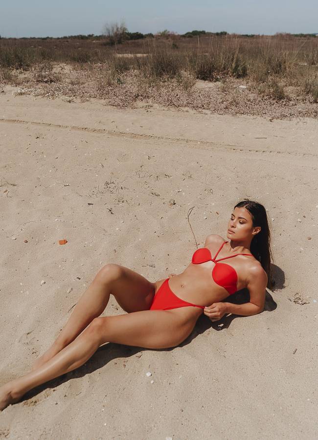 Πρόκειται για μοναδικό μονοκίνι ψηλόμεσο και ψηλοκάβαλο με εξώραφο φιτίλι περιμετρικά του brazil που καταλήγει σε κορδονάκια στα πλαϊνά, χαρίζοντας κομψότητα και στυλ στις καλοκαιρινές σας εμφανίσεις. Λόγω του σχήματος του μπορεί να φορεθεί ψηλά, τονίζοντας το μήκος των ποδιών σας. Τέλος, διαθέτει διπλή επένδυση από λύκρα του ίδιου χρώματος για να μην παρουσιάζει καμία διαφάνεια, ακόμη και όταν βραχεί!